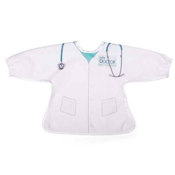 Dzięki śliniakowi z rękawami Baby Doctor nie musisz bawić się w przewidywanie przyszłości. Z nim Twoje dziecko stanie się doktorem już teraz i w ułamku sekundy zacznie wyglądać jak jeden z aktorów popularnego serialu medycznego. Dzięki dołączonej papierowej ramce z zabawnym tekstem, zestaw sprawdzi się świetnie także na zdjęciach. Pomyśl tylko, jakie wrażenie zrobisz udawanym selfie z maluchem-lekarzem!
