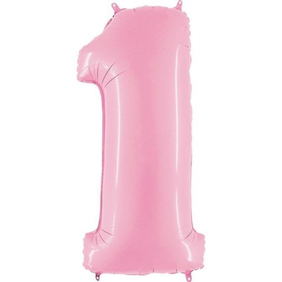 Balon foliowy - Cyfra 1, kolor cukierkowy róż. Balon w oryginalnym, eleganckim opakowaniu producenta, z Certyfikatem CE. Wysokość 40' - ok. 102 cm.