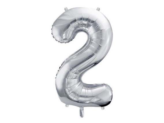 Balon foliowy Cyfra 2 srebrna, 86cm