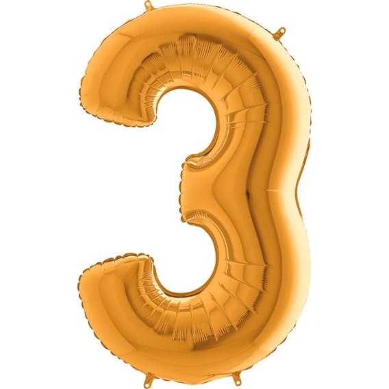 Balon foliowy Cyfra 3 Złota - 102 cm Grabo