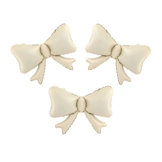 Zestaw 3 balonów foliowych w kształcie uroczych beżowych kokardek. Balon foliowy Kokardki beżowy to idealna, elegancka dekoracja na Chrzest, Komunię, wesele lub przyjęcie w stylu boho. Każdy balon ma wymiary 55 x 42 cm. W zestawie znajdują się 3 sztuki.