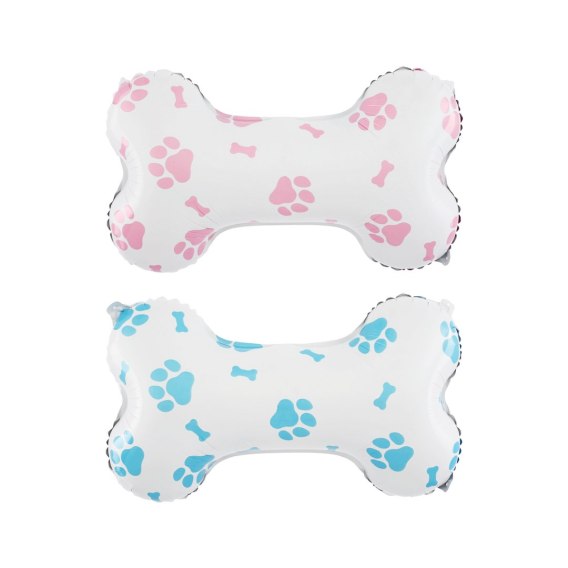 Zestaw 2 balonów foliowych w kształcie kostki dla psa. Balon foliowy Kostka dla psa to idealna dekoracja na urodziny pupila, imprezę tematyczną dla dzieci lub inne przyjęcie. Każdy balon ma wymiary 39 x 62 cm. W zestawie znajdują się 2 sztuki.