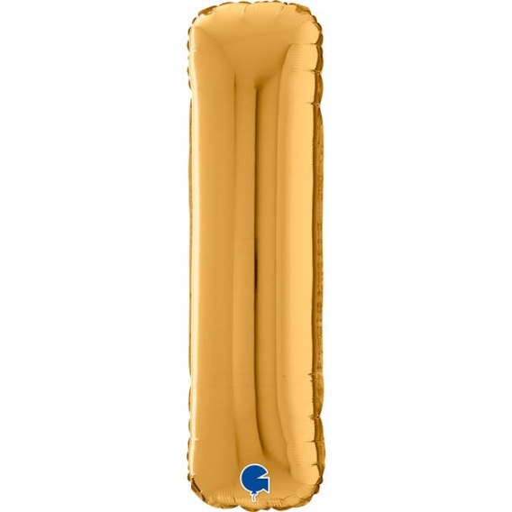 Balon foliowy metalizowany Litera I w kolorze złotym, w nowym kształcie slim 66 cm.