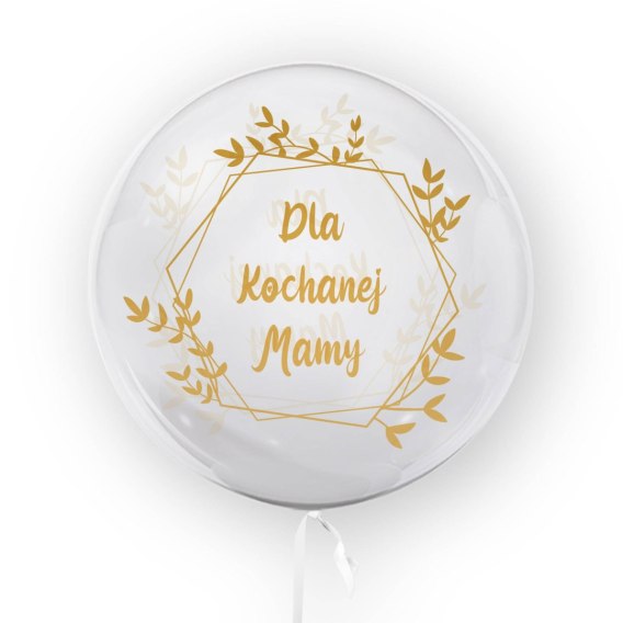 Transparentny, okrągły balon z piękną złotą grafiką i napisem w języku polskim sprawdzi się jako idealny element dekoracyjny podczas przygotowywania np. przyjęcia urodzinowego, lub przyjęcia z okazji Dnia Mamy.