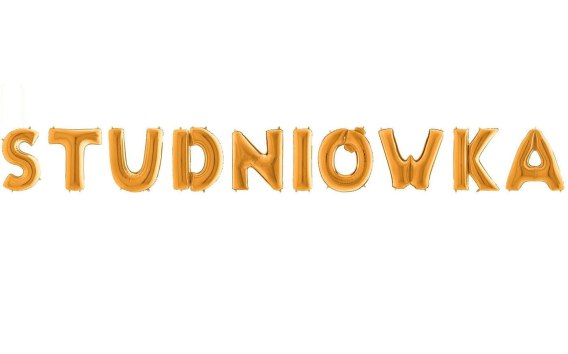 Zestaw balonów foliowych literek - STUDNIÓWKA, włoskiej Marki Grabo. Literki najwyższej jakości w pięknym, złotym odcieniu.