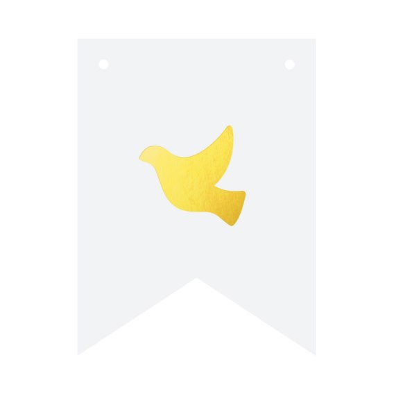 Biała flaga ze złotym gołąbkiem do stworzenia spersonalizowanego baneru tworzącego dowolny napis.