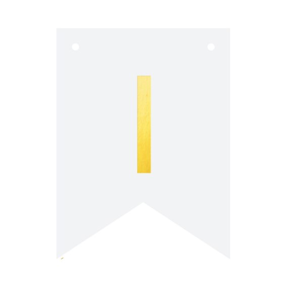 Biała flaga ze złotą literką "I" do stworzenia spersonalizowanego baneru tworzącego dowolny napis.