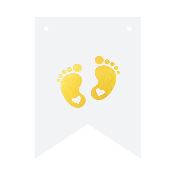 Biała flaga ze złotymi stópkami do stworzenia spersonalizowanego baneru tworzącego dowolny napis.