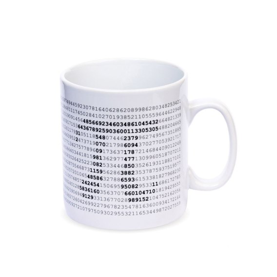 Gdyby zaś zdarzyło im się zapomnieć n-tej cyfry w przybliżeniu liczby Pi, na Gigantycznym Kubku Matematyka znajdą podpowiedź. Szczegółowy nadruk znajduje się na całym naczyniu, więc niezależnie od tego, którą ręką chwycą za ucho, mogą cieszyć się tą fascynującą liczbą.