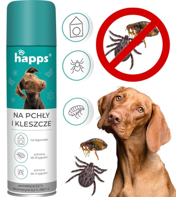 ✅HAPPS to zaawansowany spray przeznaczony do zwalczania pcheł i kleszczy, który zapewnia ochronę w otoczeniu Twojego psa.