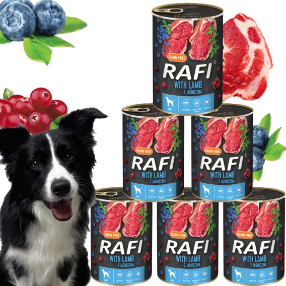 • Karma Mokra Dla Psów RAFI z Jagnięciną, Borówką i Żurawiną 400g - 6 szt.