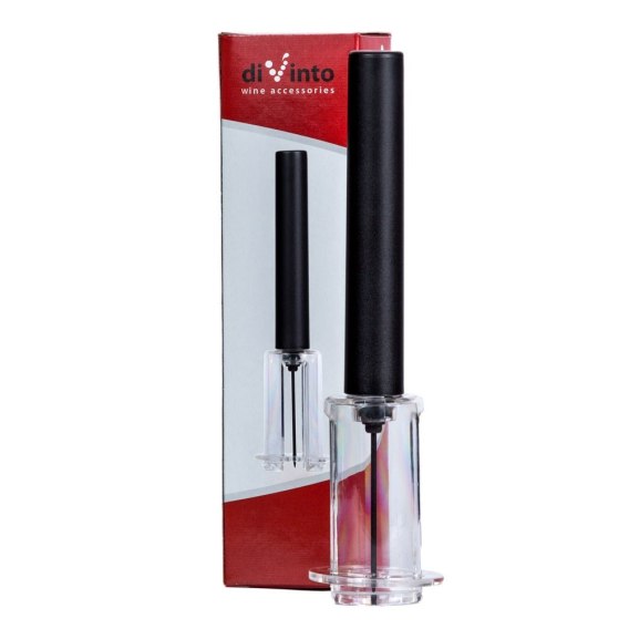 Korkociąg manualny, nie wymaga baterii. Umożliwia bezproblemowe otwarcie wina. Wykorzystuje ciśnienie, które powstaje dzięki wpompowaniu do butelki powietrza.
