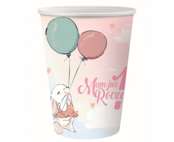 Kubeczki papierowe na Roczek dla dziewczynki z króliczkiem.