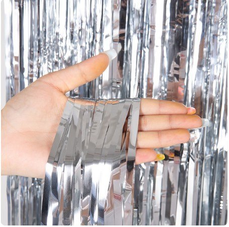 METALIZOWANA Kurtyna w kolorze srebrnym. Duża - rozmiar ok. 1 m x 2 m (szerokość około 100 centymetrów, wysokość około 200 centymetrów).
