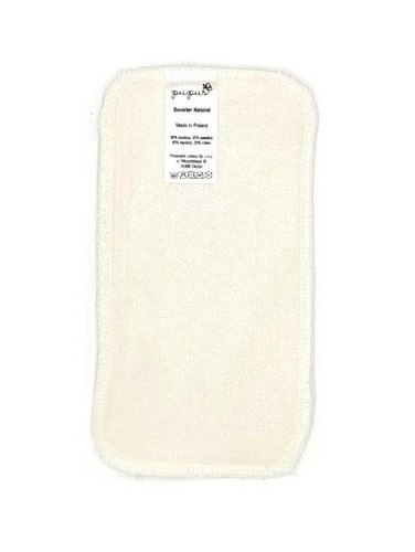 Boostery to dodatkowe wkłady umieszczane zwykle z przodu pieluszki, aby zwiększyć chłonność w miejscu, gdzie dziecko najwięcej siusia. Dzięki boosterowi nie zwiększamy grubości pieluszki na plecach, co ważne jest zwłaszcza przy leżących maluchach.