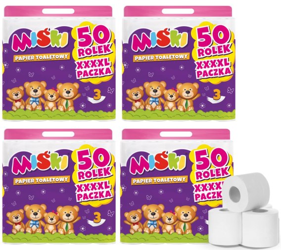 ⭐Papier toaletowy 50R MIŚKI 3W - 4 Opakowania łącznie 200 Rolek⭐