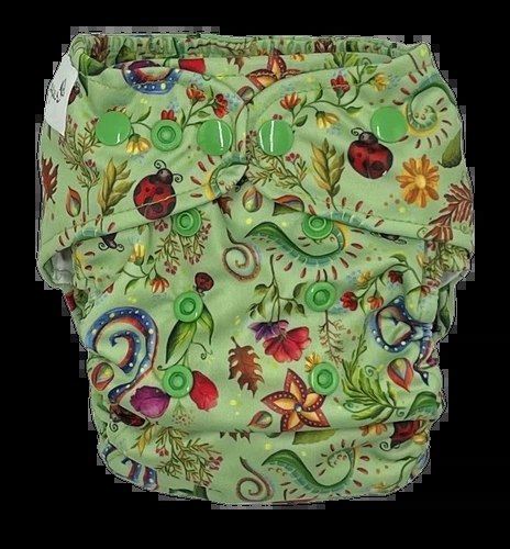 5. Materiał zewnętrzny to nieprzemakalny PUL naszej produkcji, z autorskimi wzorami