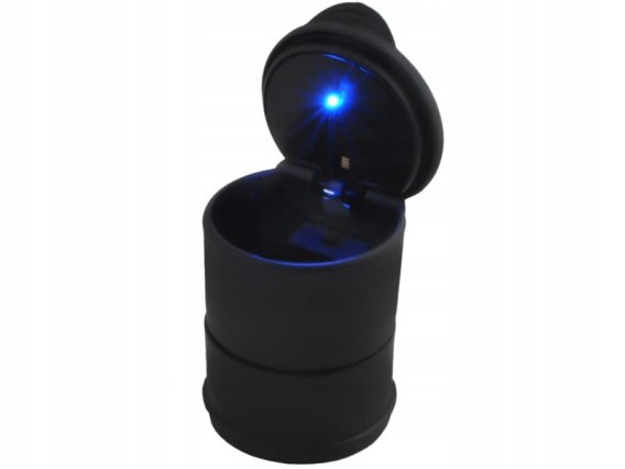 ✅Popielniczka na odpadki z niebieskim podświetleniem, zasilana baterią CR1220 (w zestawie). Doskonała nie tylko do samochodu (w miejscu na kubek lub do uchwytu), ale także do biura, na balkon itp.