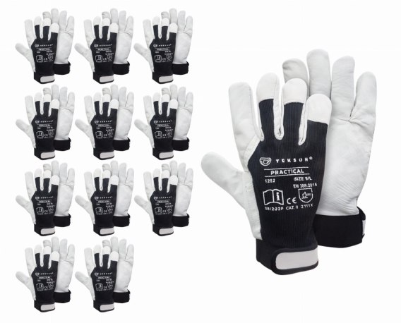 ⭐Rękawice Ochronne Tekson Practical Skóra Kozia Z Rzepem - 12 par⭐