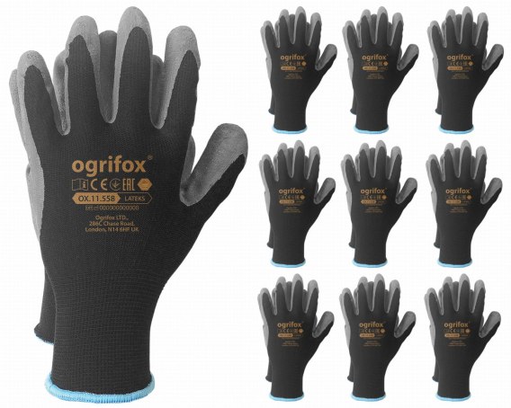 Rękawice robocze / Czarne / OX-LATEKS_BS - 10 Par (8 - M)