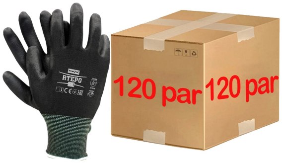 Rękawice robocze / Czarne / RTEPO_BB - 120 par (8 - M)