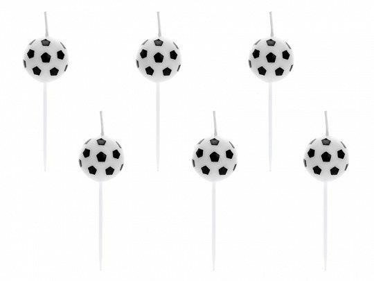 Świeczki urodzionwe w kształcie piłek, w kolorze biało - czarnym.
