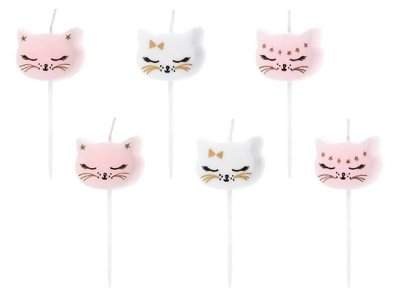 Świeczki urodzinowe Kotek mix, 2 cm, 6 szt.