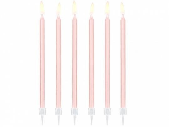 Świeczki urodzinowe gładkie w kolorze różowym.