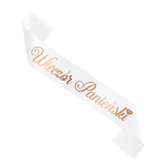 Szarfa biała z napisem Wieczór Panieński w kolorze Rose Gold, 160cm