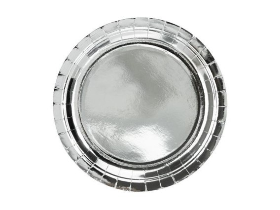 Talerzyki papierowe okrągłe w kolorze srebrnym, średnica ok. 23 cm (1 op. / 6 szt.)