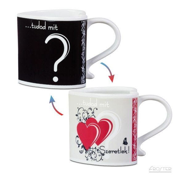 Nadruk wokół całego produktu. Napis na produkcie: Tudod mit? Szeretlek. Produkt w węgierskiej wersji językowej.