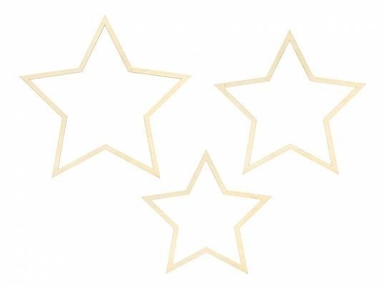 Zestaw zawiera 3 gwiazdy w różnych rozmiarach, wymiar od ok. 35 x 33 cm do ok. 26,5 x 25 cm.