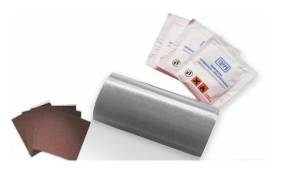 ✅Wyczyść naprawianą powierzchnię i przyklej w to miejsce łatę samoprzylepną.