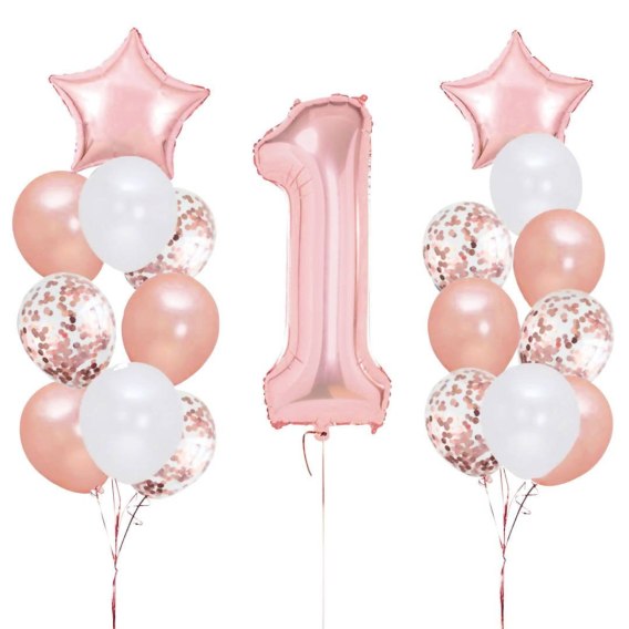 Zestaw balonów 1 Roczek rose gold, 19 el.