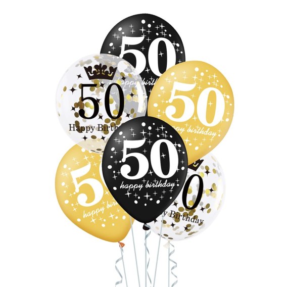 Zestaw 6 balonów lateksowych na 50 urodziny.